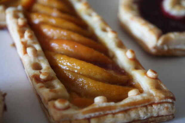 Usted puede Hilvanar con más mermelada de mango caliente después de que sale del horno si lo deseas! Por cierto, los círculos de la corteza se hicieron con el uso de una paja.