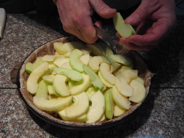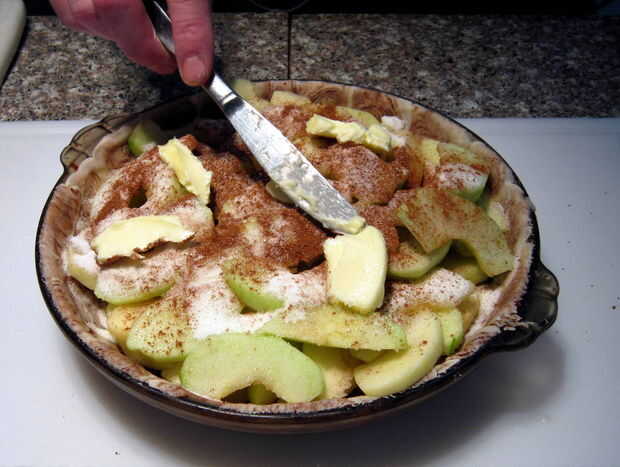 DAB unas palmaditas de mantequilla por encima el relleno y comienza en la corteza.