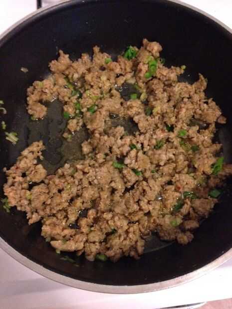Porque usé los pimientos congelados, añadí los después de dorar la carne con los demás ingredientes.