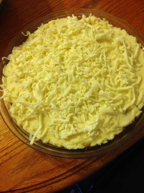 Mezcla de carne de cuchara en dos platos de pie separadas o cazuela una 9 x 13. Extensión papas sobre la parte superior de la mezcla de carne. Cubrir con la restante 1/4 taza de queso.