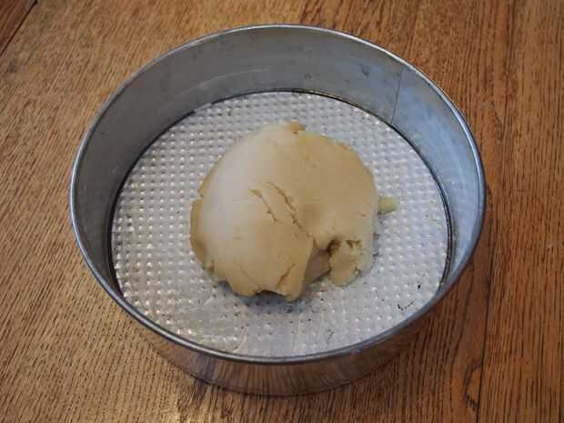9. Presione uniformemente la masa en la parte inferior y lados de la forma del resorte de la cacerola y deje que se enfríe durante 15 minutos