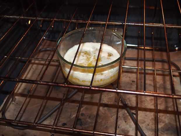 3. Coloque el recipiente en el horno durante 15 minutos hasta que empiece a burbujear