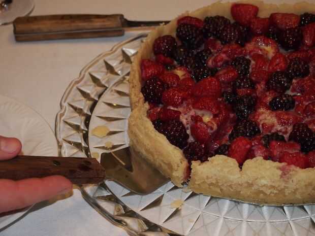 Deje que el pastel de baya se enfríe durante al menos 40 minutos antes de servir con helado.