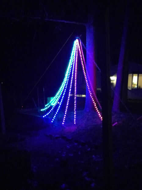 He montado 500 Leds de NeoPixel, en las 10 cadenas de 50, alrededor de 12 pies por cadena y había colgado en forma de árbol básico.