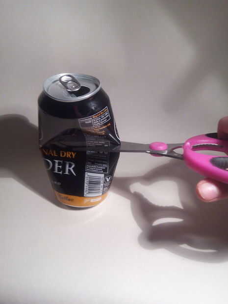 Empezar por cortar la lata por la mitad luego hacia la base. Luego cortar la base para que sea una forma cricle. Es importante llegar a esta tan esférica como desechables porque esto representa pi. Esto puede ser difícil así que asegúrese de usar tijeras fuertes. También tenga cuidado al cortar la lata porque el metal puede ser agudo.