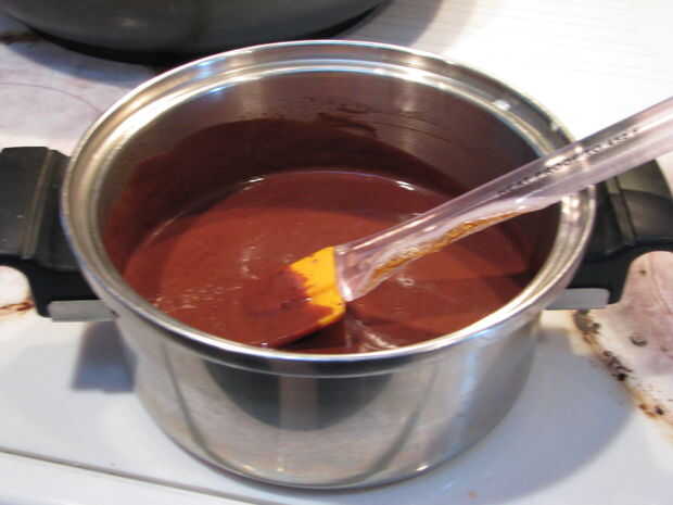 Después el chocolate se haya enfriado, vierte en la parte inferior de la cáscara.