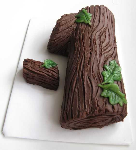 Para el registro negativo, pensé en el postre de tronco tradicionales de vacaciones. Me imaginaba un segmento estratégicamente colocado corte desde el extremo de un tronco lo convertiría fácilmente en el número uno. Otra pequeña del rodillo del registro puede hacer que el signo negativo. Para seguir con el tema del sabor de chocolate y almendras, I había añadido harina de almendra a un batido de chocolate sin harina, había hecho un mullido relleno con sabor a almendra y había utilizado mazapán para hojas. El ganache utilizado para el registro hace deber doble como una capa de pastel, manteniendo la corteza de galleta de chocolate de llegar empapado del relleno de pastel de cereza.