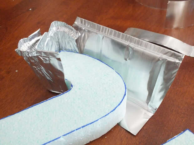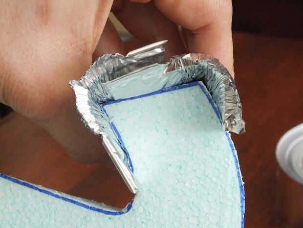 Para aristas cóncavas, curvado bandeja recta bordes por arrugando la parte inferior para crear el arco deseado. Para los convexos, corté tiras de la parte inferior del utensilio para que pudiera ser aventó hacia fuera.
