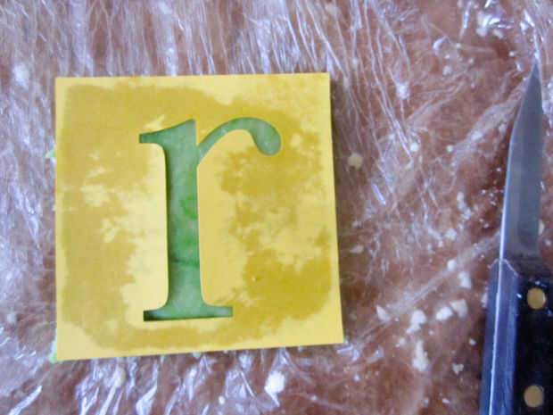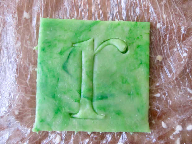 Coloque sobre la masa verde y cortar la Plaza y R.