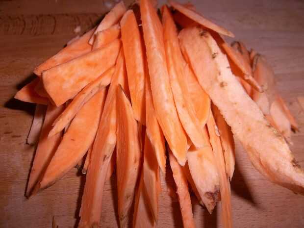 • 2 batatas medianas, cortadas en bastones/palillos de tamaño mediano