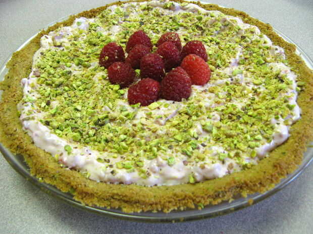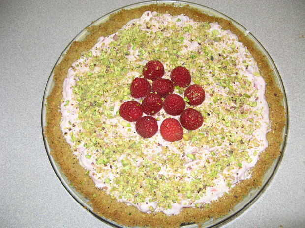 un relleno ligero y cremoso con tartas frambuesas y una corteza moteada de pistacho que se derrite en tu boca se unen para crear esta deliciosa torta. El relleno es sólo ligeramente azucarado y utiliza yogur griego para aumentar el contenido en proteínas, dejando su consciente claro para disfrutar de una--bien, tal vez