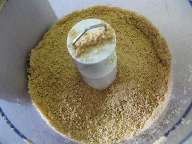 3. procesar las galletas a una miga fina; Añadir el azúcar y el pulso para combinar