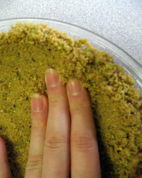 7. Utilice sus dedos para repartir las migajas a lo largo de la bandeja y presione para solidificar la corteza