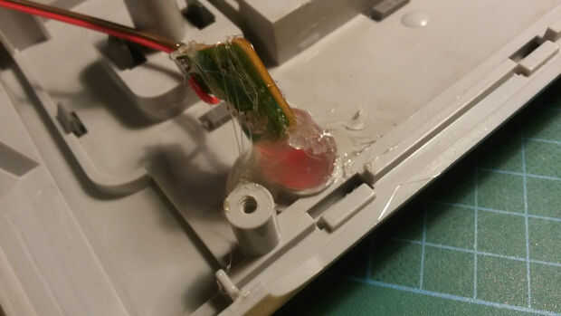 Para mostrar la vida interior, regresé el LED de la tarjeta controladora y puesto nuevamente dentro con pegamento caliente. Con este LED, puede comprobar que está funcionando el lío funcional:).