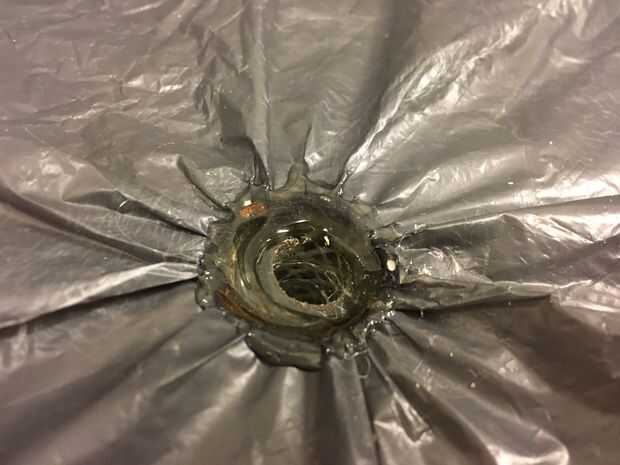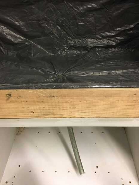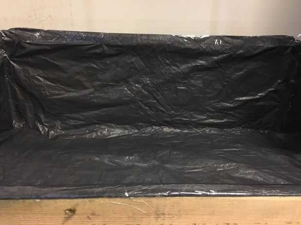 Para obtener al menos algún depósito impermeable luego pegado una bolsa de plástico (puede utilizar un lienzo más fuerte en su lugar) a la parte inferior y los lados y los bordes con cinta plástica. Hemos hecho agujeros en la bolsa de plástico en los orificios perforados. 3 tubos más cortos en el medio para el drenaje y en mantener el espacio en el lado abierto del tubo conectar la bomba con el panel de instrumentos. Para conectar los tubos ahora rápidamente fijamos les con pegamento caliente. (No decir que acabado con silicona y una fijación más fuerte sería más duraderos y prueba del agua).