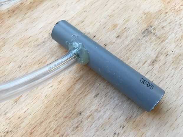 Para trabajar a velocidad conecta todos los tubos en esta instalación con pegamento caliente, pero la aplicación T-conexiones y otras pequeñas conexiones sanitarias con caucho y silicona sería más duradera.