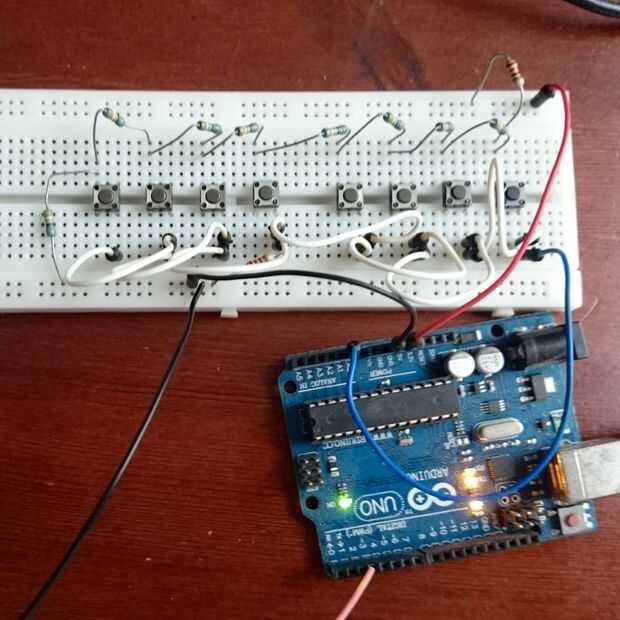 Hay muchos trucos para poner más botones en pocos puertos, pero este funcionó a la perfección para mi 8 botones.