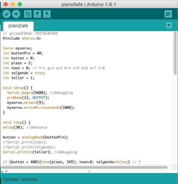 Si (teller == 13 & & descarga == true & & toon! = 5) {digitalWrite (13, bajo); teller = 1; myservo.writeMicroseconds(1000);} //1000 es el valor para el servo del cerrado