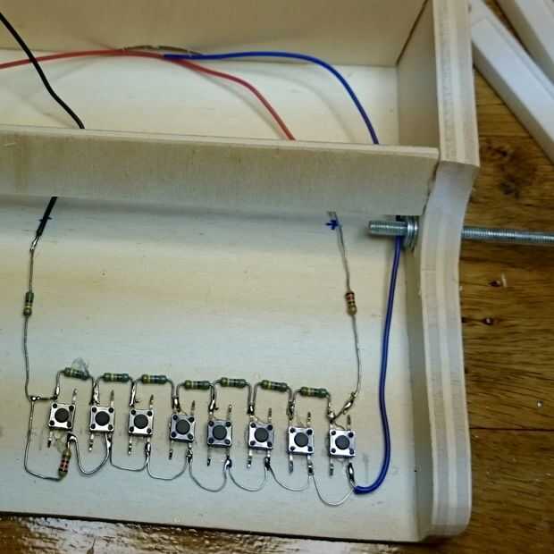 Doblar hacia fuera los cables de los botones y pegarlos en su lugar con pegamento caliente.