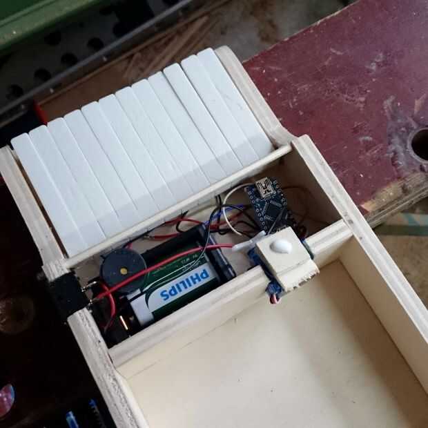 Doblar un alambre que se abra la tapa de la caja.