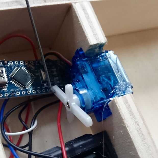 El servo del pegamento y del interruptor en lugar con pegamento caliente.