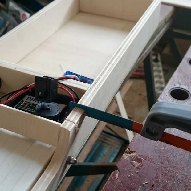 Corte una ranura para colocar el servo y uno para el interruptor.