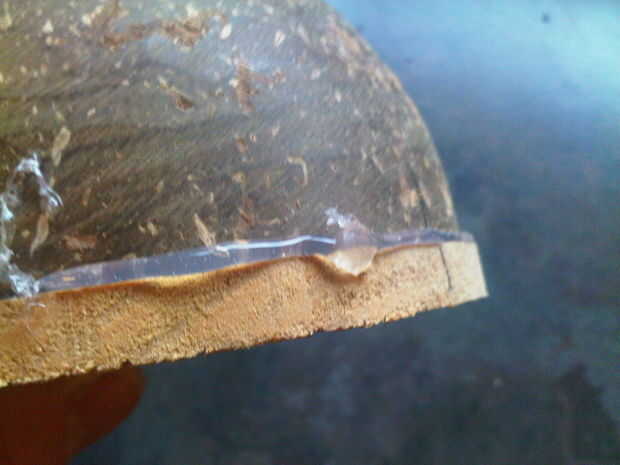 Aquí se pegue la tarjeta de sonido a la cáscara de coco. Debo mencionar que estoy usando un pegamento caliente industrial de muy alta calidad para este proyecto. También escoge un lugar en la tarjeta de sonido para perforar de un agujero de una pulgada que su boca. Basta con mirar las fotos para tener una idea de donde debe estar.