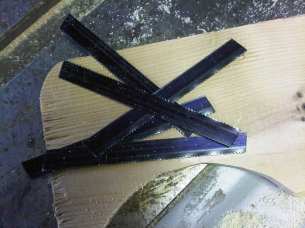 Ahora es el momento para hacer las teclas de tu piano. Elegí una hoja de Sierra de cinta de 3/8 de pulgada que corta en 5 pedazos cada aproximadamente 3 pulgadas de largo.