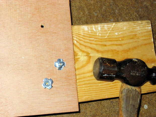 3 perforar y golpear ligeramente las tuercas en T en lugar con un martillo.