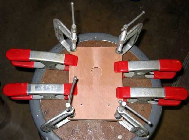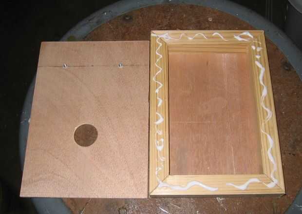 Montar el resto de la caja (cuidado no a golpear sueltas las tuercas en T!). Clavos no se verían bien en la superior tan solo uso pegamento y pinzas. Asegúrese de utilizar a algún tipo de almohadilla entre la abrazadera y la caja. Ellos no aparecen en la fotografía porque me olvidé y terminó con algunas marcas de la abrazadera a la arena hacia fuera.