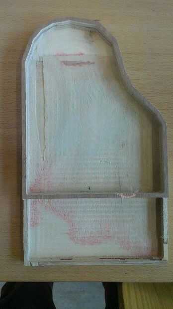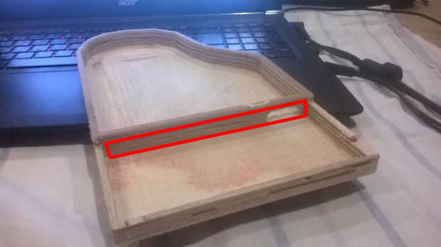 Después de que el corte se realiza se necesita quitar un pequeño trozo de madera para asegurarse de que el teléfono se deslice debajo de la tapa.