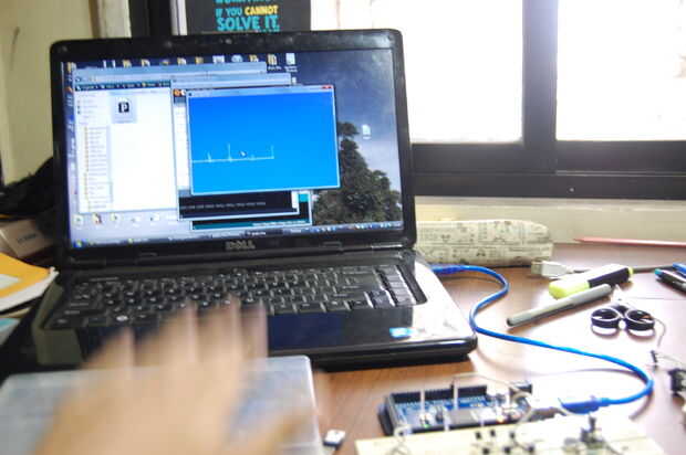 Ahora abra proceso y copiar el código desde abajo (graph_line.pde). Ahora ejecute el programa de proceso. Como el Arduino envía los valores del pin A0 a través de USB, el programa de procesamiento de trama de esos valores en una analogvalue - gráfico de tiempo, de 0 a 1023.