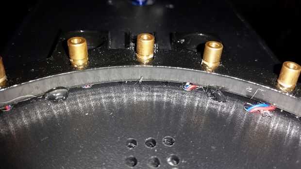 El primer paso es pegamento caliente todas las resistencias de la foto en los pequeños orificios en la pieza superior de Piano del láser.