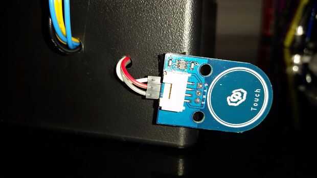 Perfore un agujero en el lado del sensor de tacto. Alambre es a través del agujero y pegamento caliente el sensor de contacto al lado de la caja.