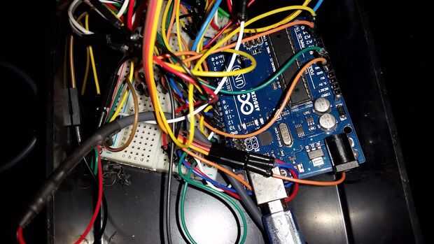 Ahora, simplemente las foto reóstatos del alambre juntos y correr los cables por la parte en la caja electrónica. Hacer lo mismo con el láser.