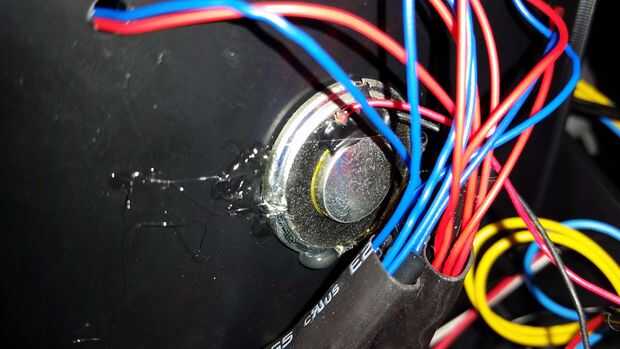 Taladre agujeros para los altavoces y pegamento caliente el altavoz en el interior del recinto.