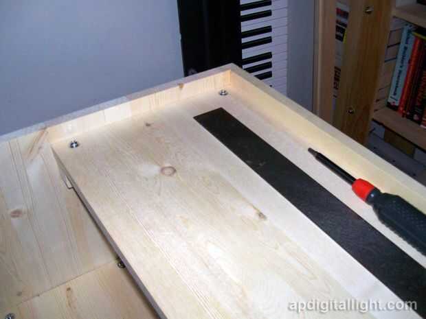 Para hacer más estable y rígida una de 6 "x 60" tabla de piano sujetas a parte inferior de los paneles laterales.