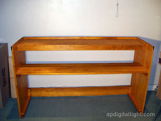 Diseño final de piano soporte incluye sólo cinco piezas de madera y 18 1/4"-20 tornillos de máquina y requiere solamente un destornillador para montarla.