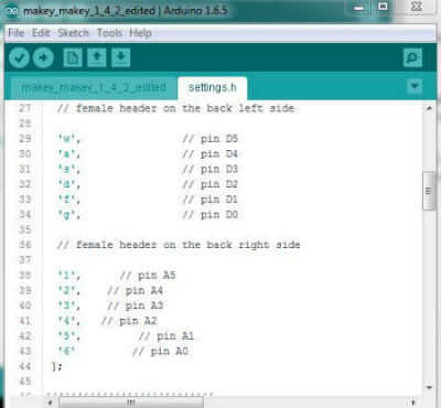 Mi objetivo para este proyecto era crear un piano que permite para el juego individual y colaborativo y que fomenta la creatividad. Para todas las claves necesarias, tienes que reutilizar algunas de las entradas en la parte posterior, en concreto, las entradas del mouse analógico. Para simplificar, convertía en números del 1-6. Siga las instrucciones en la página web SparkFuns para reprogramar su Makey Makey: https://learn.sparkfun.com/tutorials/makey-makey-... Al descargar el código Makey Makey por primera vez, te recomiendo que verifiques primero para asegurarse de que subirá sin problemas. Obtendrá un error acerca de las bibliotecas de teclado o el ratón. En mi investigación en línea, he encontrado que otras personas sólo comentaron que hacia fuera así que hice lo mismo.