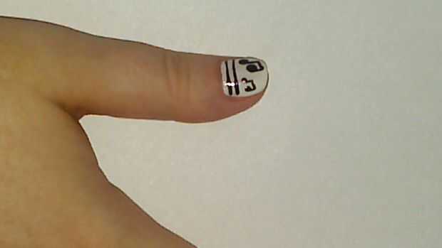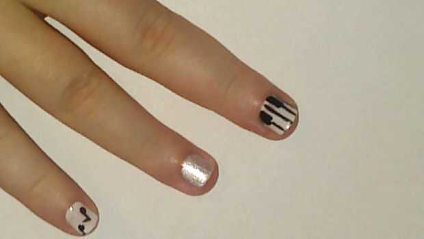 En tus uñas pintadas blanco entonces dibujar notas y teclas del piano con color negro.