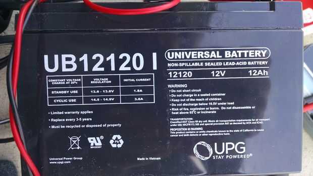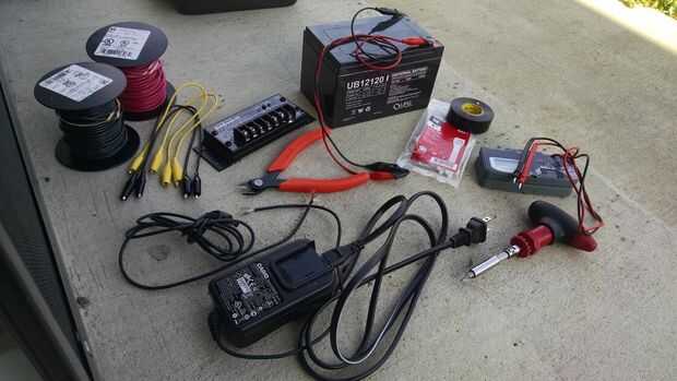 En la selección de las piezas, elegir una batería de 12V podría suministrar un poco más que la corriente que necesita para el tiempo que lo necesites, en caso que sea un día nublado. En mi caso, mi teclado utiliza una corriente máxima de 1,5 y digamos que quiero correr durante tres horas. Entonces quiero una batería que puede fuente en 1.8A mínimo y tiene una capacidad de al menos 1,5 * 3 horas = 4.5Ah. He encontrado que las pilas que he comprado parecen no ser capaz a la fuente de todo su nominal cantidad, así que para estar seguro, multiplicar por un factor de 2. Estoy usando una batería de 12Ah, así que overkill, pero de tal vez $10 extra, puedo ser más que el sistema funcionará siempre y cuando necesita ejecutar.