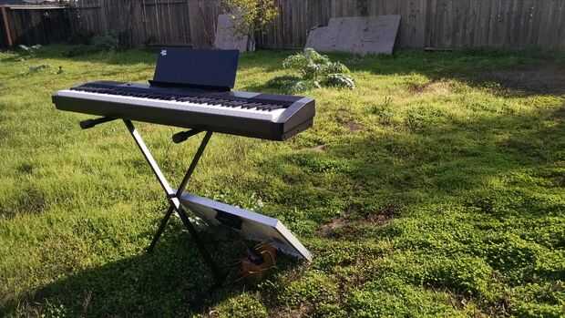 Músicos han puesto pianos reales en un campo y jugar música hermosa en medio del sol y el canto de los pájaros. No tengo un piano de cuerdas y madera real, pero tengo un teclado piano digital - y fácilmente puedo cargar mi teclado, batería y panel solar en mi pequeño coche y llevar la música allá donde va el camino y el sol brilla. Tú también puedes! Y si lo hace, por favor enviame fotos...!
