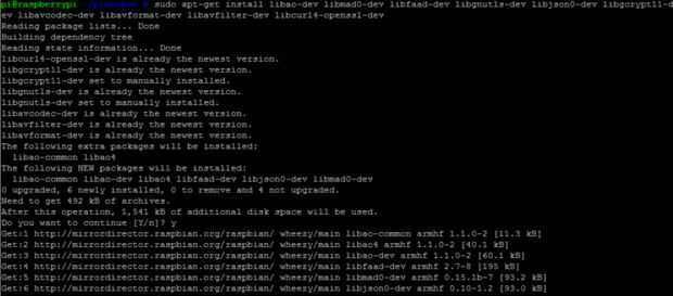sudo apt-get install libao-dev libmad0-dev libfaad-dev libgnutls-dev libjson0-dev libgcrypt11-dev libavcodec-dev libavformat-dev libavfilter-dev libcurl4-openssl-dev