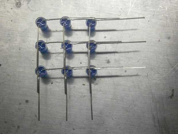 Los 9 cátodos del centro de la curva abajo y soldarlos en 3 columnas.