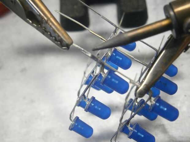 Colocarlos diagonalmente para que los conductores no tocar, los cátodos a un lado de la soldadura y luego doblar los ánodos sobre los cátodos. Los ánodos 90 º de los cátodos de la soldadura.