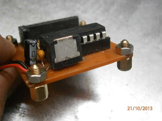 No podía hundirse todo ese calor con la pequeña superficie dejo, lo he cortado un trozo pequeño de aluminio disipador de calor y térmicamente-pegué al regulador de voltaje.