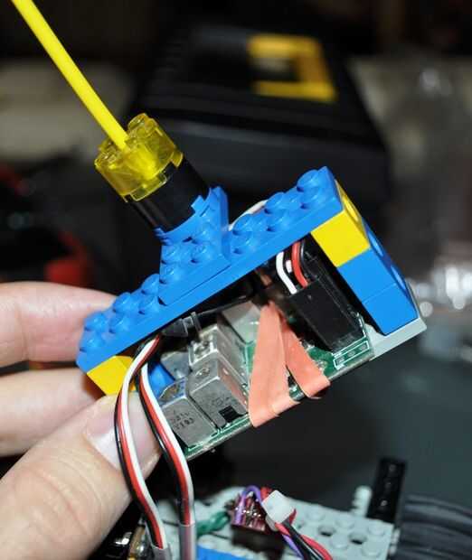 este grado 4 del brazo de robot de libertad está hecho de dos Thymio Robots y un montón de lego. Las ruedas pequeñas lego rota delante de los sensores de proximidad para medir la distancia real recorrida.Este brazo robot fue creado por: Dr. Stéphane