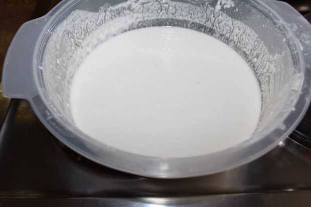 Hacer la masa mezclando 1 o 2 tazas de harina con un poco de agua. Cuando se mezcla con la mano sabes la consistencia.