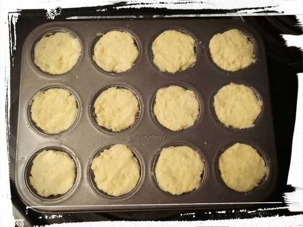 Llenar una bandeja de mini muffins con la masa. Esto hace un verrrry pasta suave. ¡Eso está bien! Humedecer los dedos para dar forma a la masa si es necesario. Si usted prefiere, puede refrigerar la masa hasta que quede más sólido (pero recuerde agregar un minuto o dos y luego el tiempo de cocción).