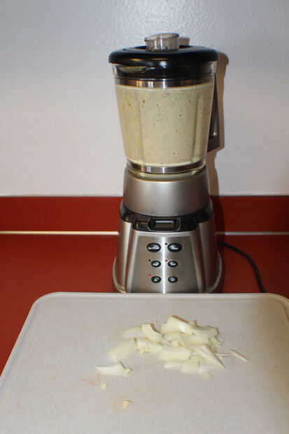 2. Poco a poco añadir las especias, el ajo y la cebolla a la licuadora funciona.